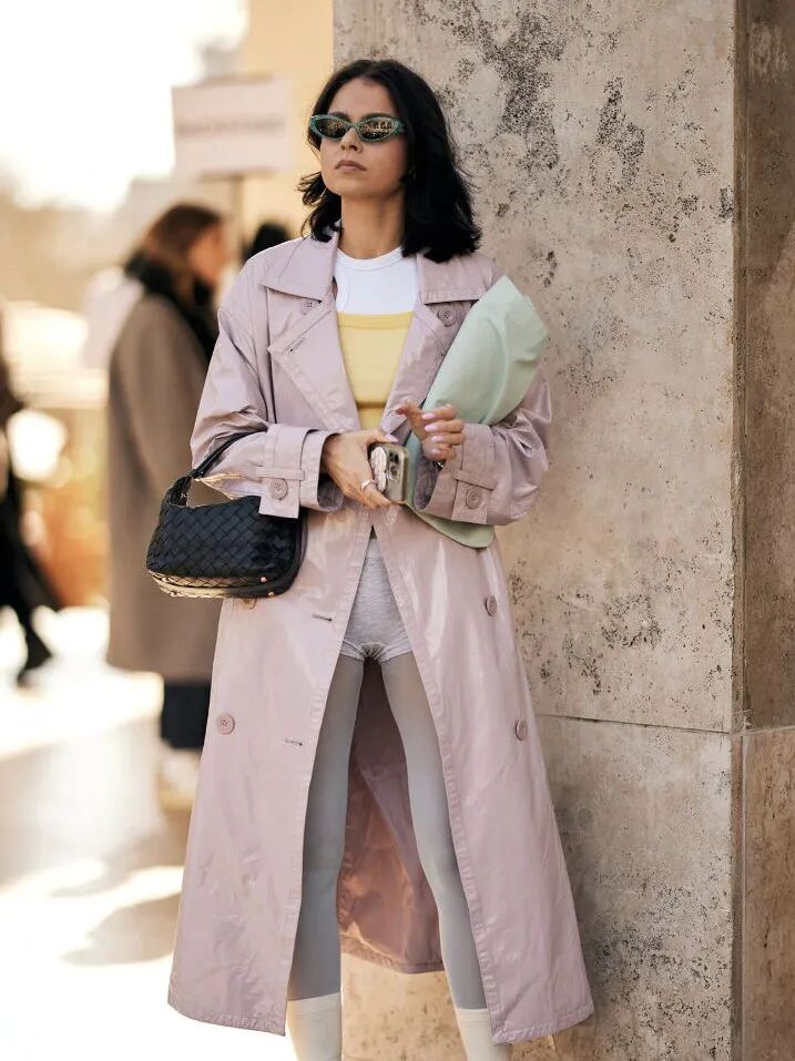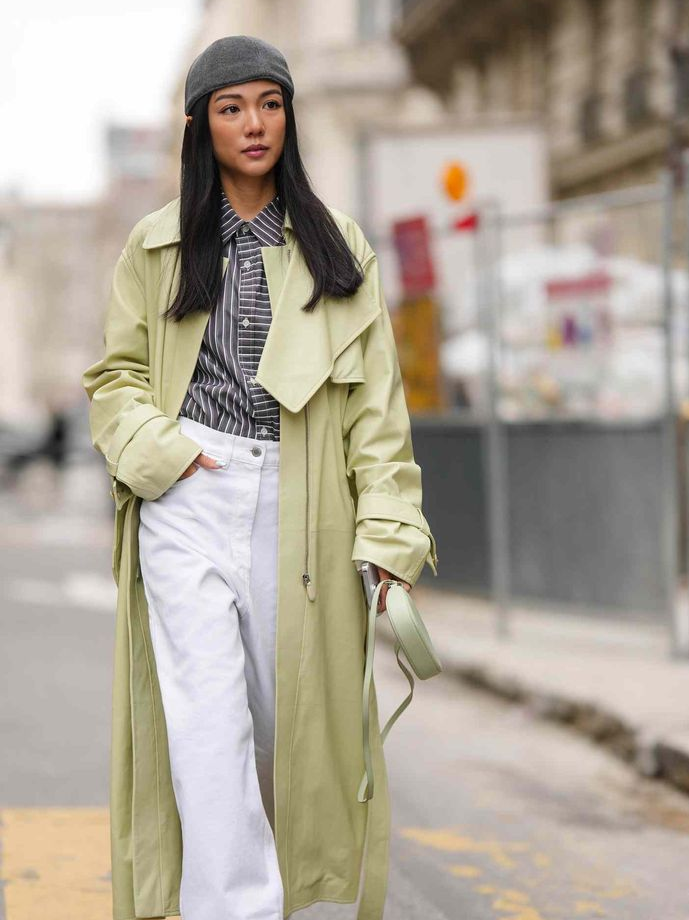 所以春天里,不妨大胆地把奶油绿穿在身上,一件奶油绿的风衣穿在身上,会让整个人的气色都变得通透起来。