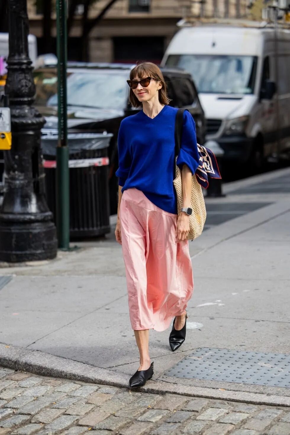 这种粉淡得恰到好处,淡到哪怕从头到脚穿一身,也不会让人觉得矫情或不符合年龄。