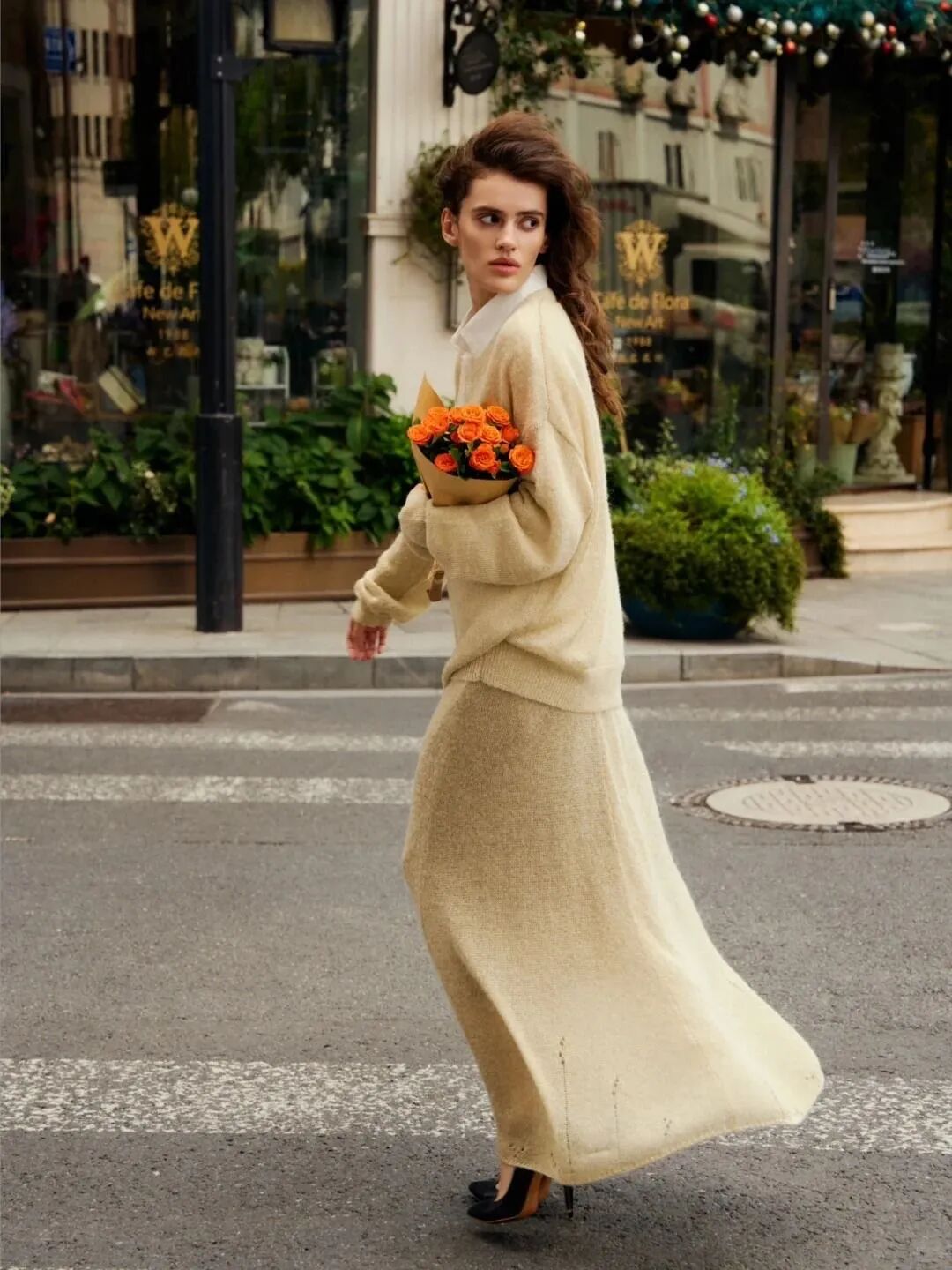 而奶油色,恰恰是与春日最相得益彰的存在。带着阳光的温度,柔软地包裹着身体,仿佛把春天的暖意与温柔穿在了身上。