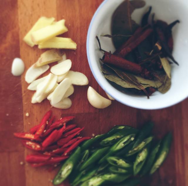 大料,葱,姜,生抽,老抽,黄酒,冰糖,白芷,辣椒;
