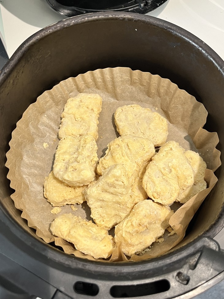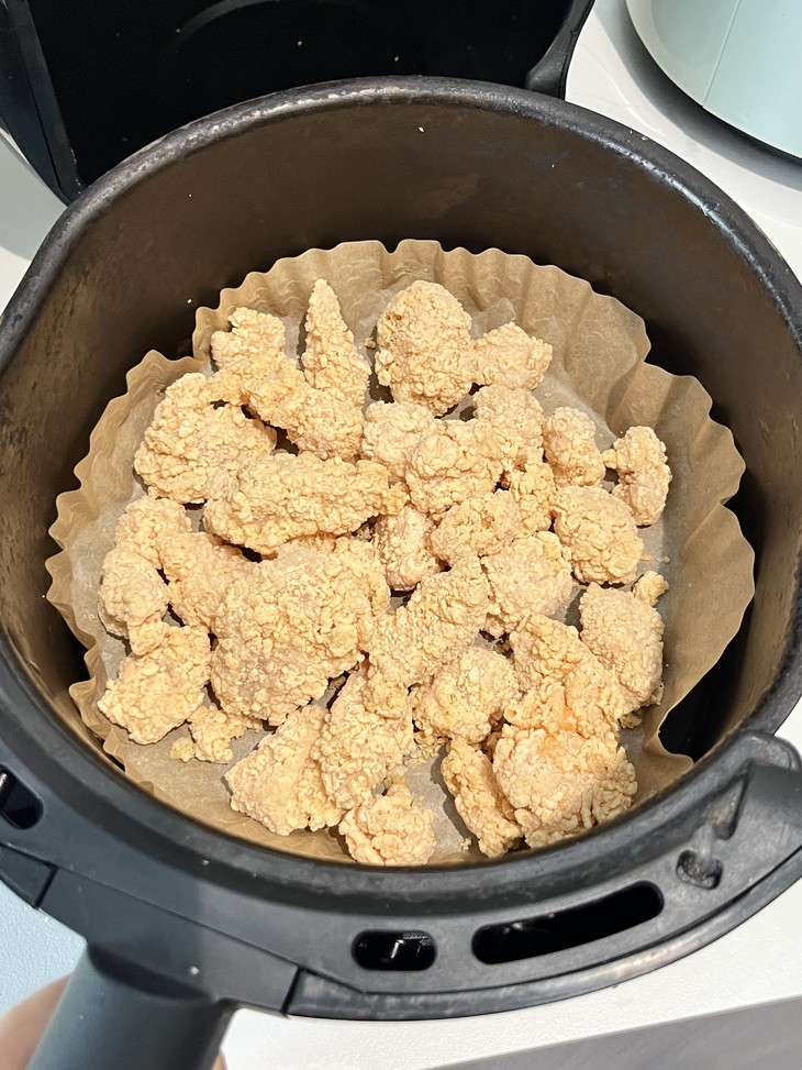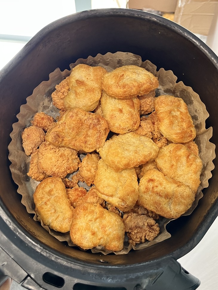 2.倒入炸锅(不用解冻、喷油,喜欢更焦脆一点的不推荐垫油纸~)