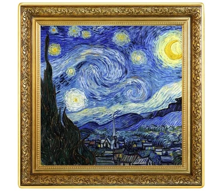 这幅《星空》(又名《星月夜》)就是他住院一个月后,在深夜看见绚烂的星空所绘,画中的村庄就是圣雷米。