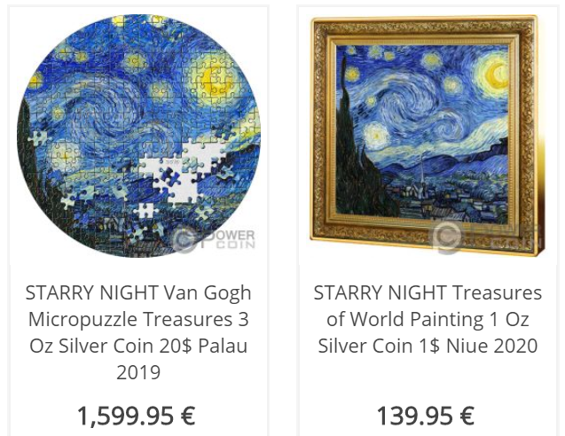 许多国家都曾发行过世界名画系列的纪念币,而这幅《星空》更是其不可缺少的主题之一。