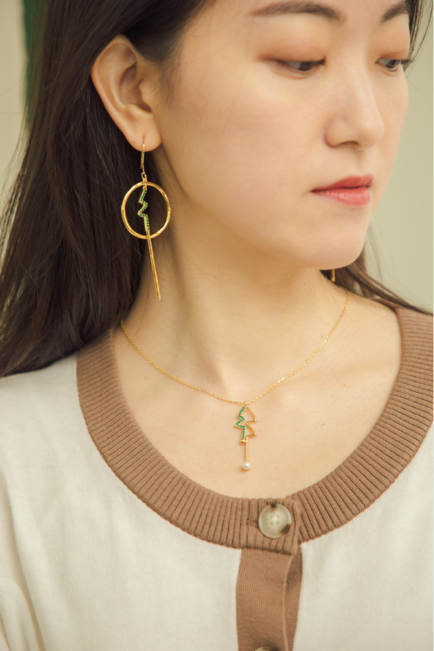 这款森林物语耳环戴上去很有温柔的气质~中心对称结构耳环的设计,左右两侧相互呼应构成一个小森林~立体又生动!仿佛是耳边摇曳的一串旋律~耳环修饰脸型也好绝,把颈部的线条衬托得好好~上面密镶的彩色锆石也让耳环更加高级了!