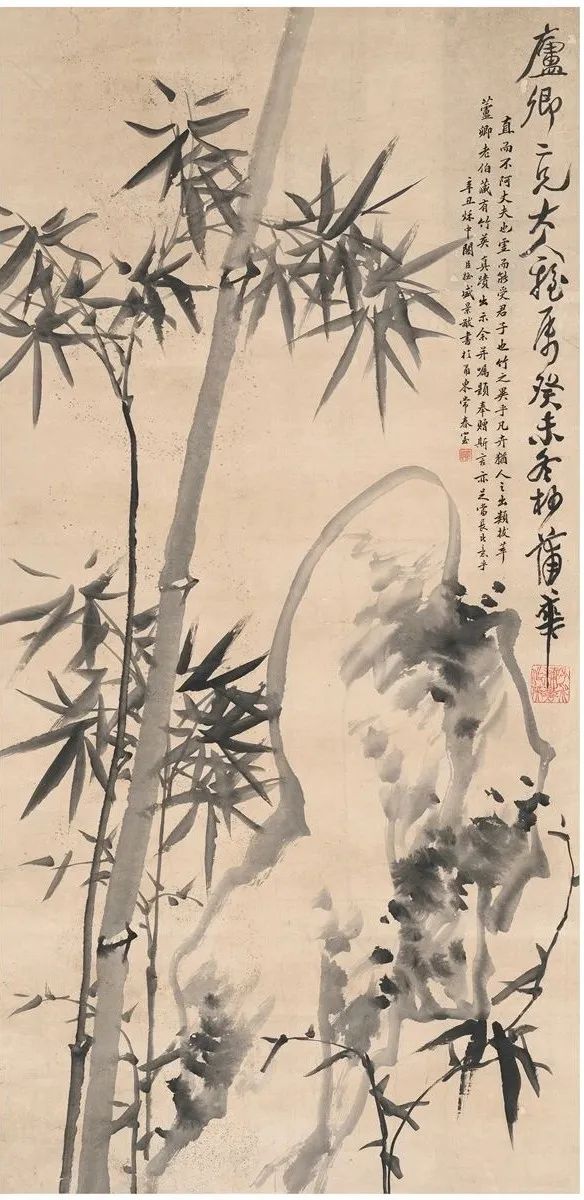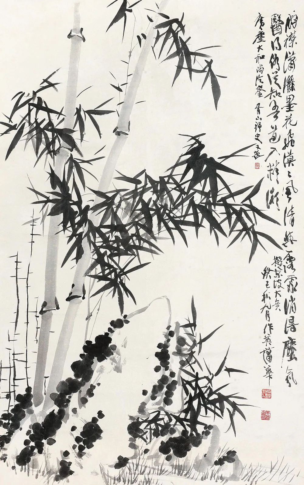 《中国美术家人名辞典》典称蒲华画竹:“晚乃画竹,心醉文同,一干通天,叶若风雨。”此幅正是一干通天,叶若风雨者耶。