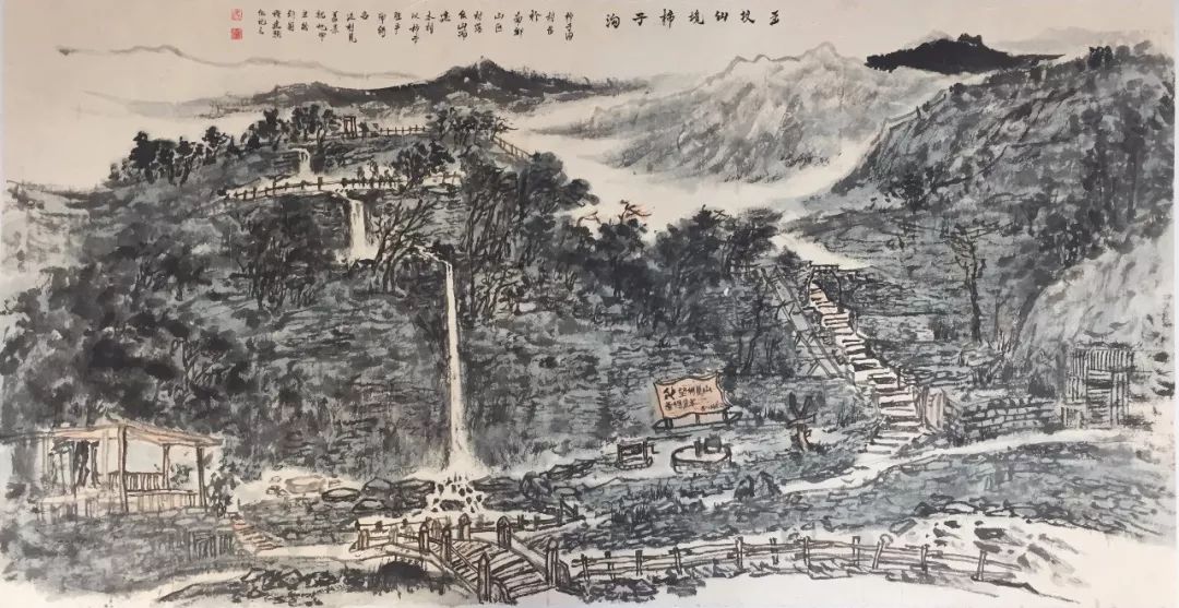 最后用墨点苔点,如同山水长眉眼。横点竖点尖与圆,用笔触纸莫迟缓。根据山形来选择,笔法一致有聚散。前后上下有虚实,以碎求整更深然。
