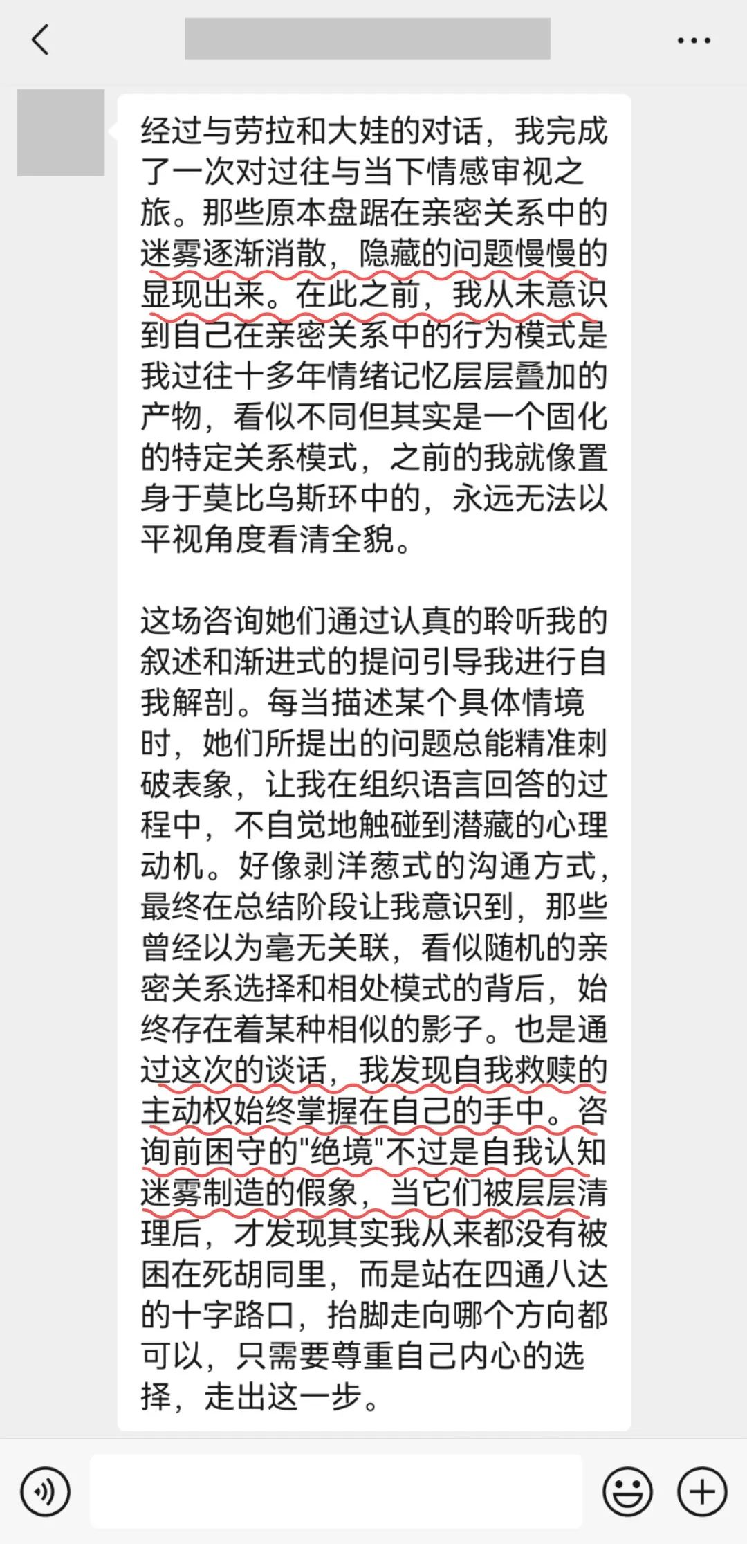 所以她的命题是要意识到这个问题,并想办法跳出这个循环,疗愈过去受伤的自己。后续她也有发来正在反馈,我们感觉好欣慰~