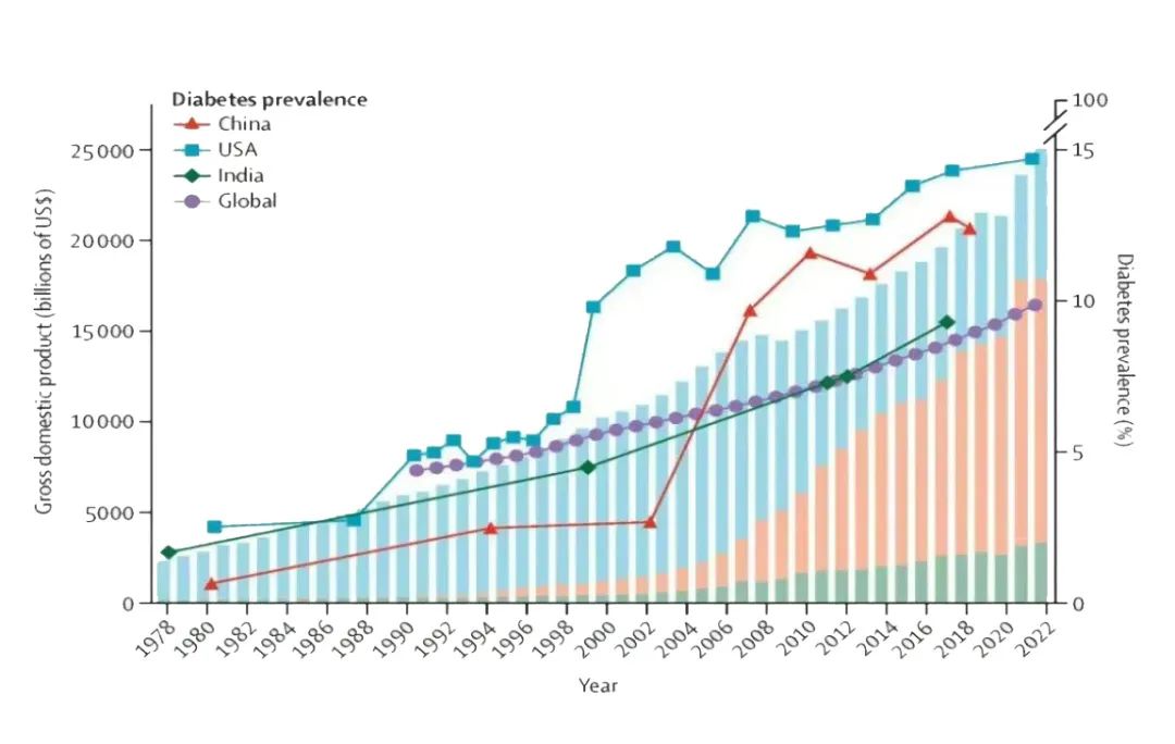 根据权威数据,我国糖尿病形势严峻。截至 2024 年,我国糖尿病患者达 1.18 亿,占全球患者 22% ,是全球糖尿病负担最重的国家之一!