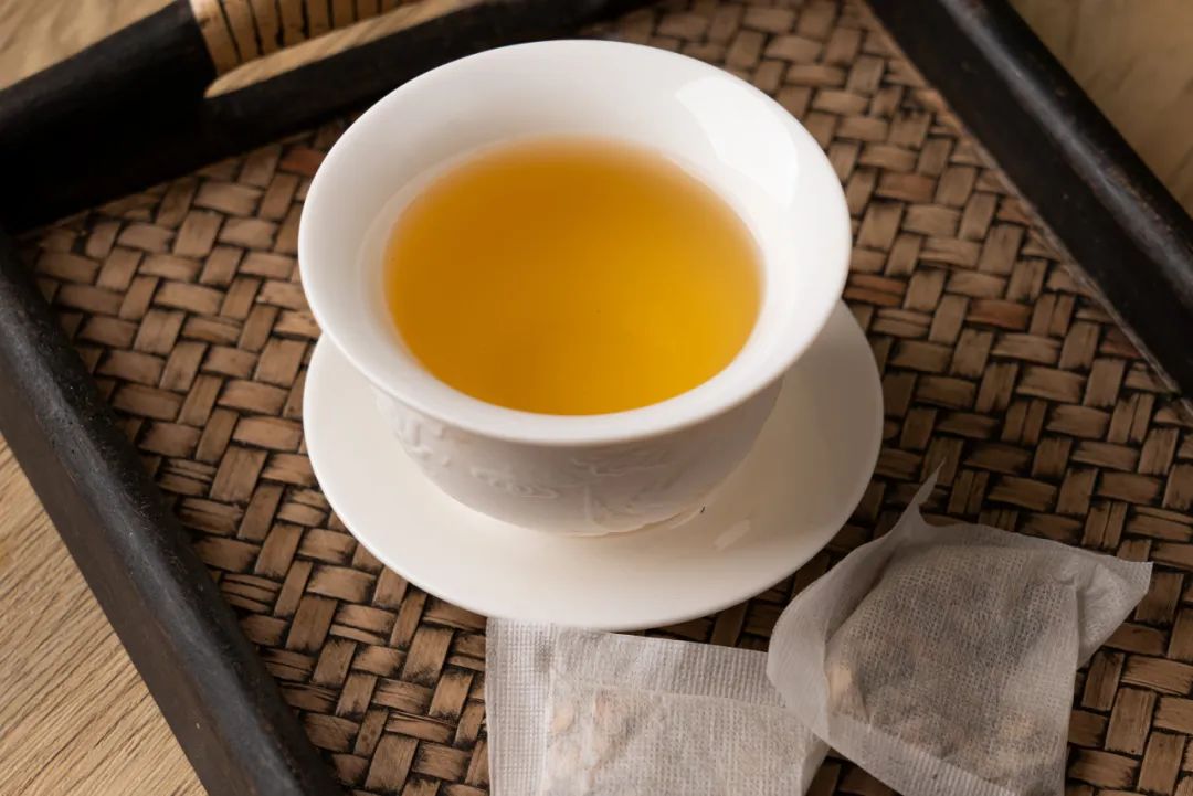 这茶泡好后,茶汤清透,呈现自然的淡黄色。