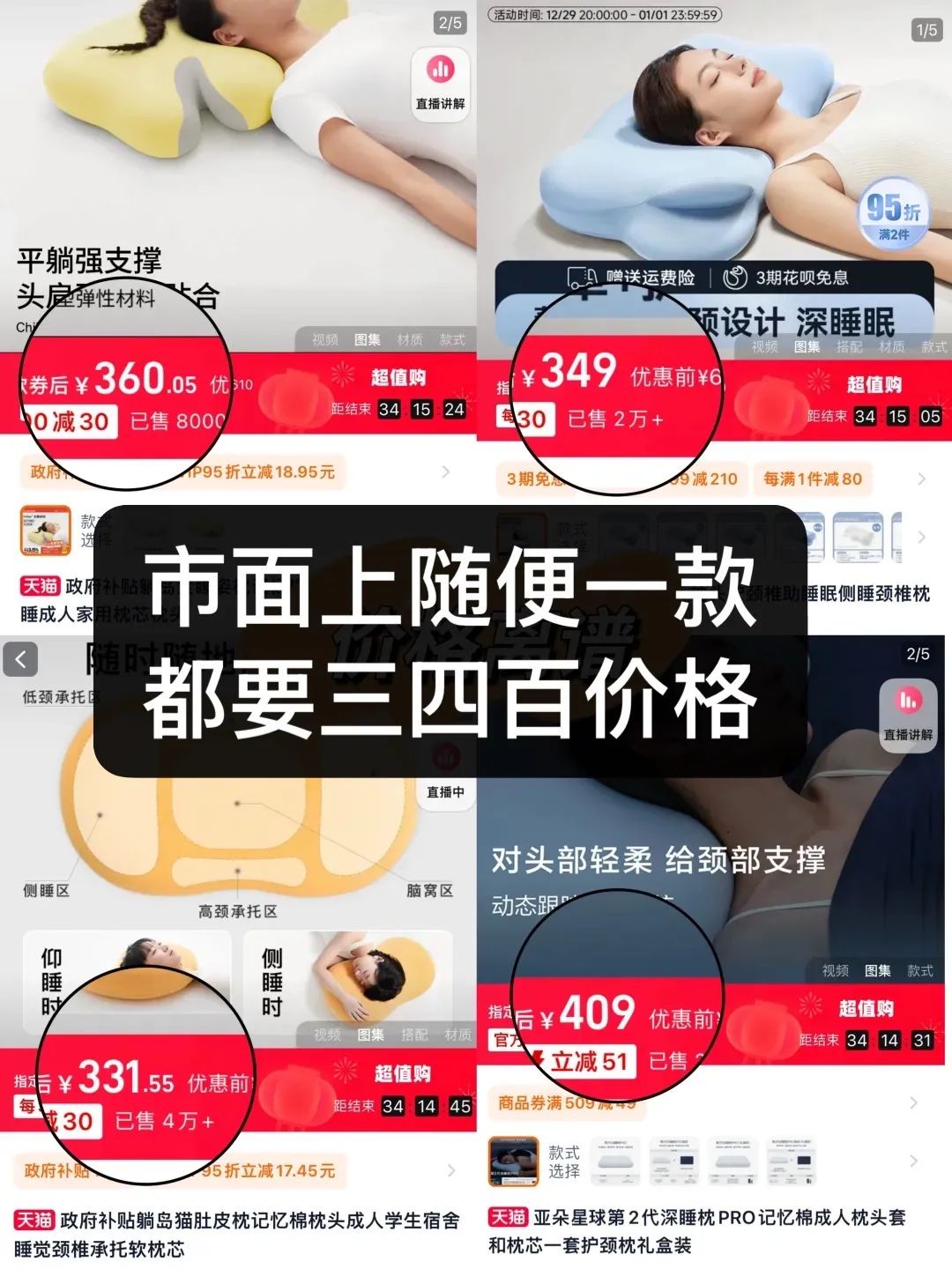 市面上同类型的分区记忆枕,都卖到300-400元,月销5000+。