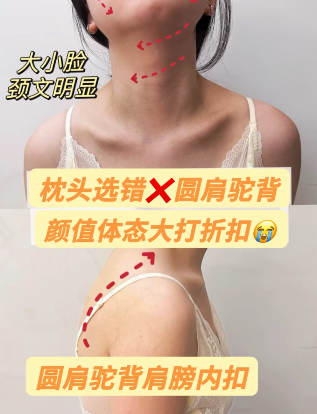 长期使用劣质枕头,不仅会加重肩颈劳损,还可能引发驼背、高低肩、富贵包及颈纹等多种问题