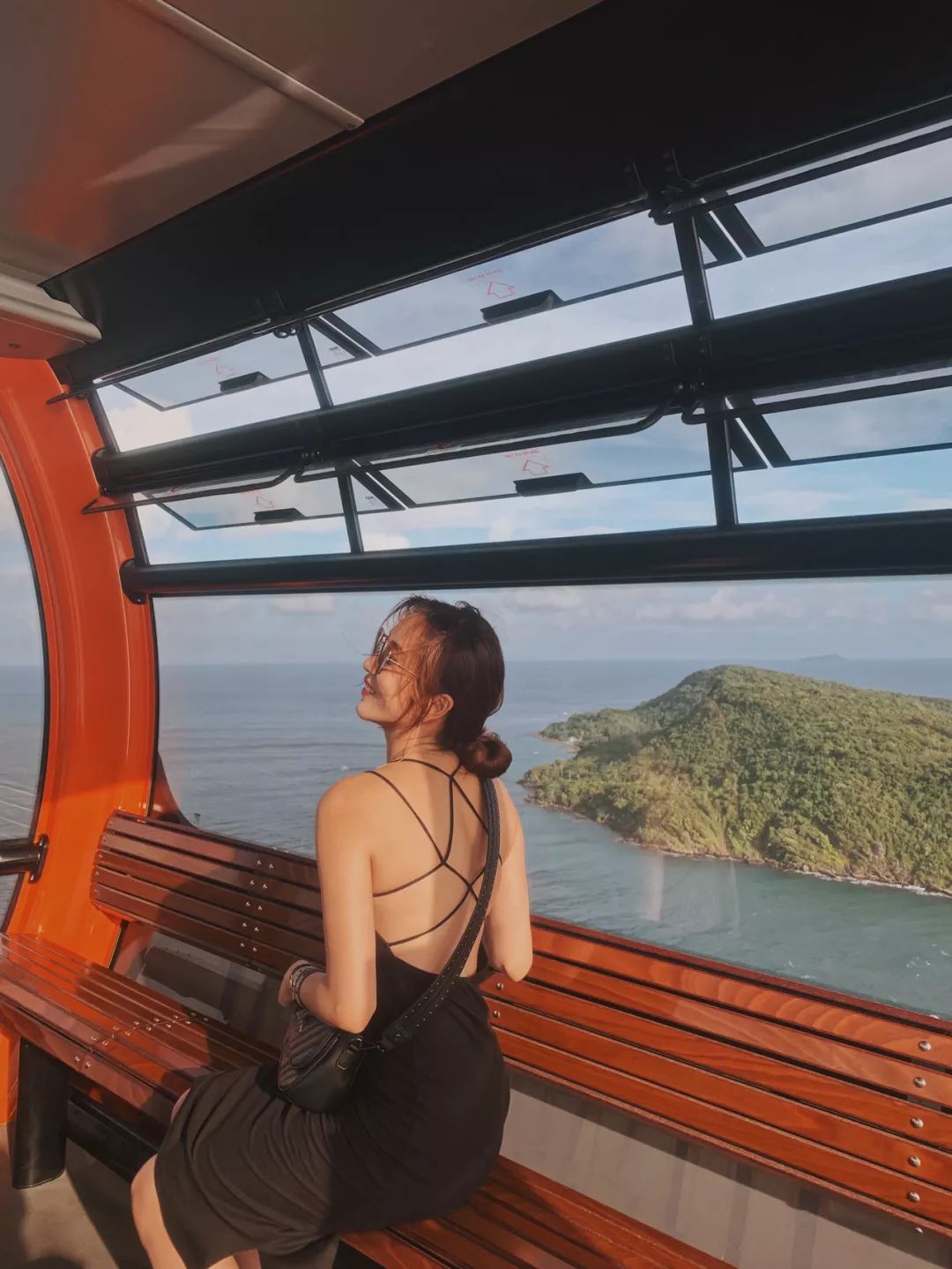 香岛缆车也是新增的项目,缆车横跨5个小岛,据说是世界上最长的跨海缆车。乘坐在缆车上,就像在用上帝视角俯瞰整个海域,平静的海面和零星的船只,真·360度尽收泰国湾迷人的景致。