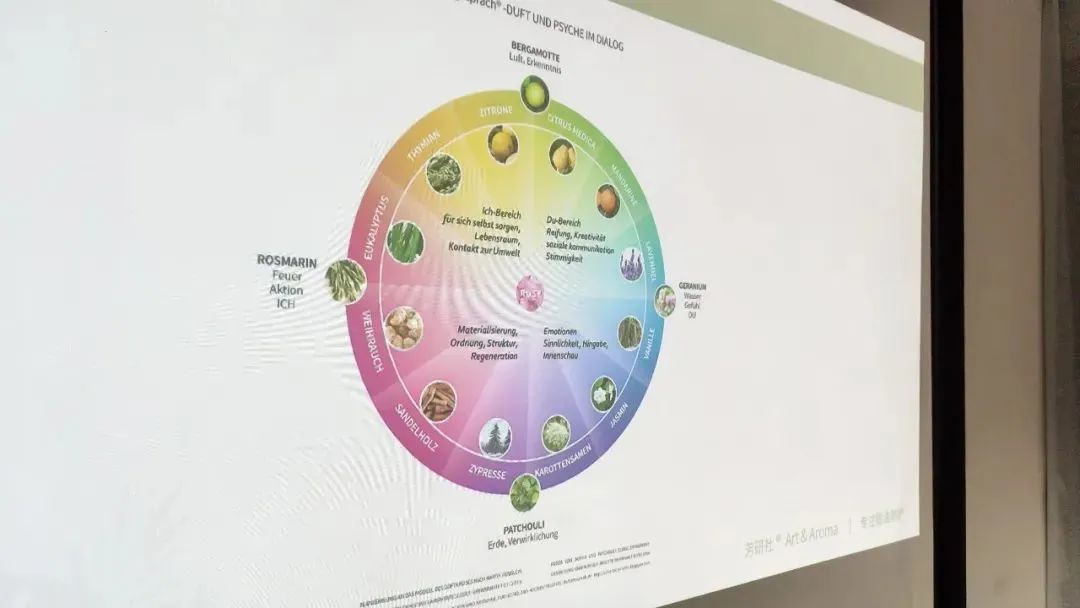 Zimmermann老师是生物化学系毕业,对于精油化学研究颇深。我关于“成分、气味和功效三者一体”的专题有很多灵感都来自于她多年收集和记录的资料。而她的学生Christine Lamontain除了在她这里学习芳疗之外,还跟着另外一位老师Martin Henglein学习了芳香心理学,并把自己最感兴趣的芳香心理学作为自己的事业,在东部城市Jena开始把自己学到的内容落地,开展了多年实践,在身心整合方面帮助了很多人,并且注册了一个Duftgespräch------Duft und Psyche im Dialog(香气语言------香气与心灵的对话)的商标,在老师Martin Henglein的基础上,把自己的实践经验加进去,形成了一套自己的体系。
