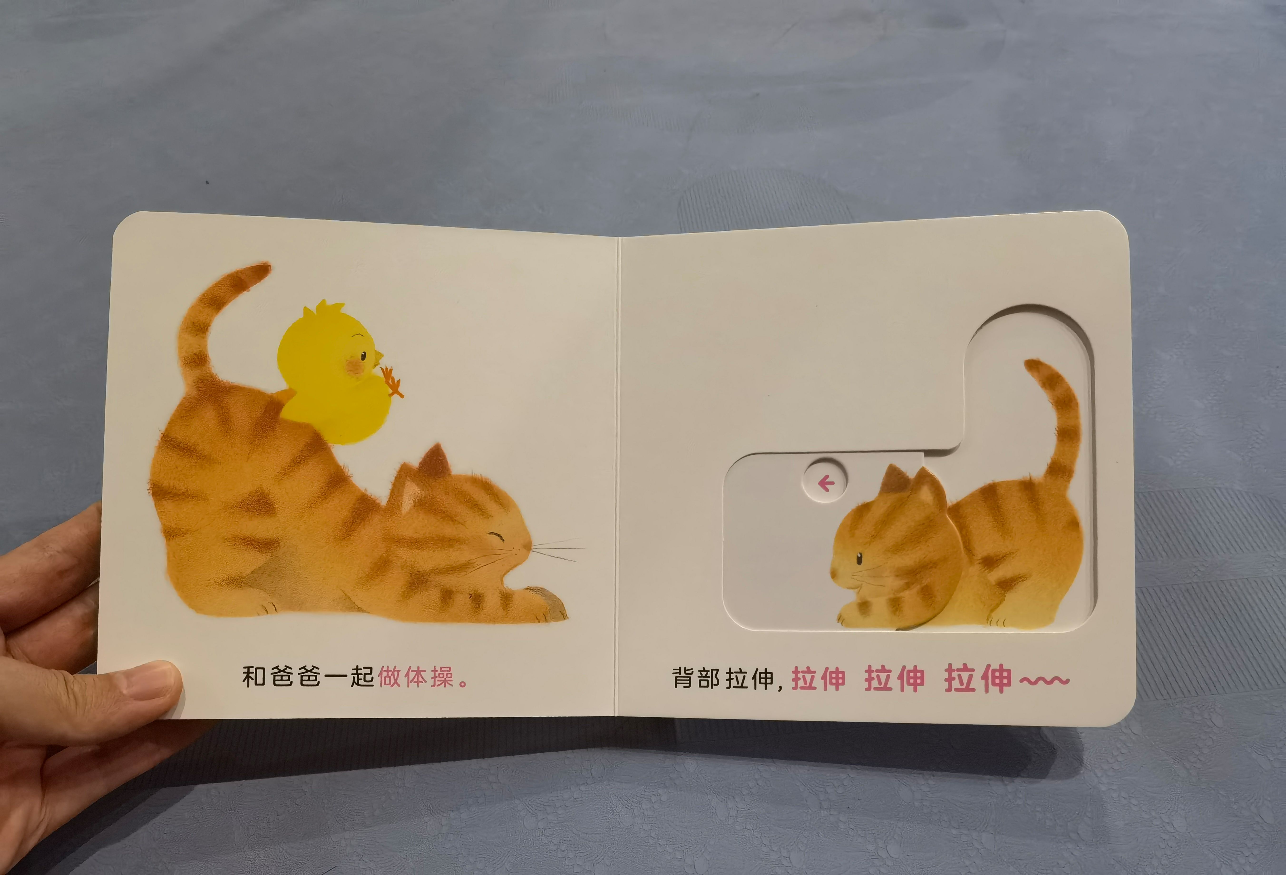 每次跟他说小猫咪伸懒腰咯,笑得咯咯咯停不下来(题外话,小鸡球球另外一本摸肚子的,也是喜欢小狗小猫) 其实我给宝宝读书真的很佛系,不要求他认真学些什么,只要享受阅读的过程,养成阅读的习惯即可。