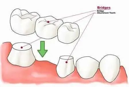 将缺牙部位两侧的邻牙作为“基牙”,在基牙上进行预备,去除一定量的牙齿组织,然后制作义齿(假牙)。