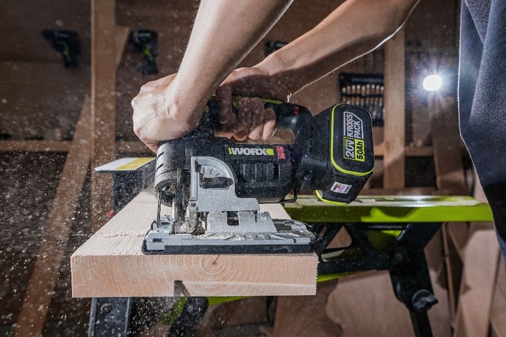 WU550曲线锯作为威克士20V KROSSPACK锂电平台的新成员,可以与同平台旗下的其他电动工具共享电池包,比如锂电钻、锂电起子机等,完成如锯切木板、打孔、拧螺丝等定制安装的流程性工作,多场景搭配,效率翻倍的同时使用起来更加灵活。