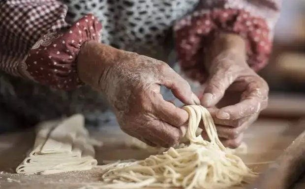 小时候的面条基本都是现做的。 姐姐记事的时候,全家还是手擀面,听母亲说,全家把面条大部分给了姐姐吃,大人主要喝面汤,吃点酸菜,那时是七十年代。