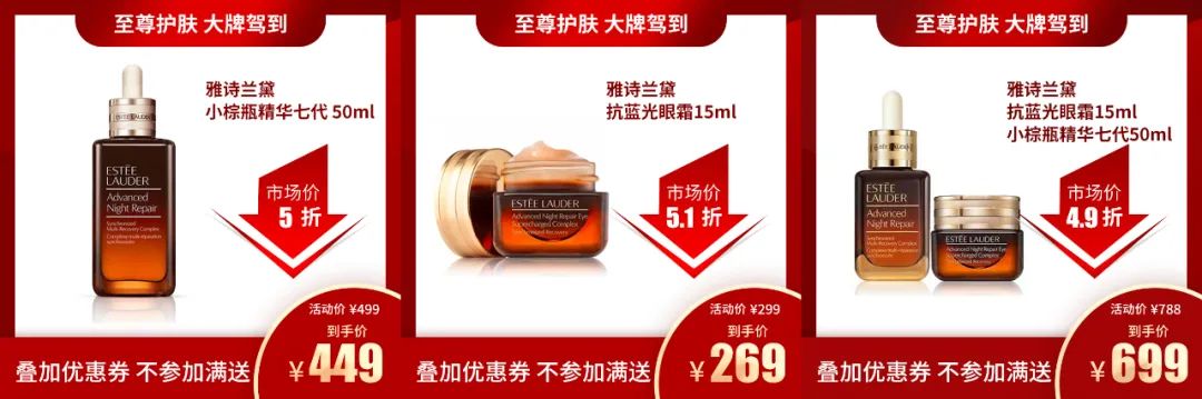 除了海蓝之谜,娇韵诗,我们还准备了有口皆碑的雅诗兰黛特润修护肌活精华露(小棕瓶第七代)、雅诗兰黛特润修护精华眼霜,以及这两个产品的组合套装;(👆点击图片,即可前往购买)