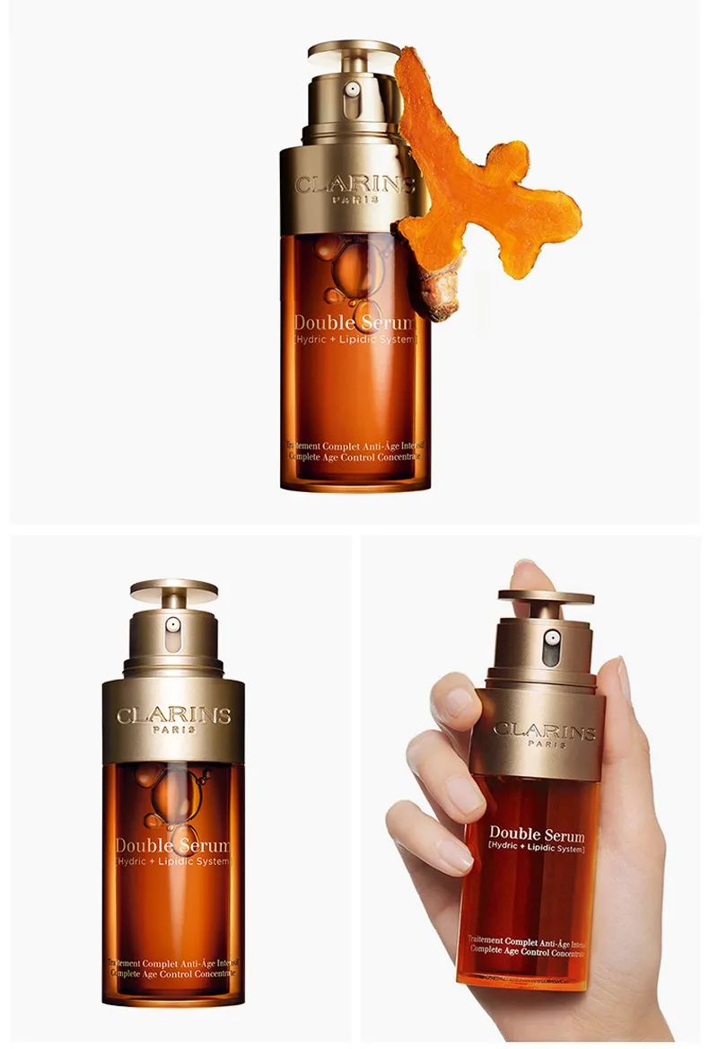 同样主打藻提取物+十多种植物提取物+数种金属离子+烟酸。不同于精华面霜,还添加了大名鼎鼎的海茴香提取物,配合了胆甾醇和亚油酸来强力修护和舒缓不适。除了这些,抗皱方面,运用到了赫赫有名的乙酰基六肽-8;抗氧化方面,运用了咖啡因、野大豆蛋白、Ve衍生物等等。实属华丽的精华水!使用感上,是有明显保湿感的精华水质地,全肤质适用,油田可以自己调整后面产品的保湿程度~既然要讲讲大牌好物,那么怎么能少了十一最爱的大牌——娇韵诗。那么作为娇韵诗的核心产品—双萃精华,又岂能放过?双萃是最早提出“模拟皮脂膜最佳水油配比”概念的一款精华,修护和稳定皮肤的健康状态,是它多重功效之下的根基。得益于水油两相的设计,配方直接将乳化剂“开除”掉了,没有了乳化剂,致痘的风险被极大程度地降低,整体配方也显得更加“纯粹”。这款精华虽然算是半个精华油,但对肤感的要求非常有讲究,摒弃矿物油,选用了合成酯作为基础油脂,清爽度堪称油类中的“一股清流”。角鲨烷、鳄梨油不皂化物、水飞蓟籽油和水杨酰植物鞘氨醇的组合,从神经酰胺、胆甾醇、脂肪酸三个角度出发,补缺补漏,非常契合皮肤屏障的需求。