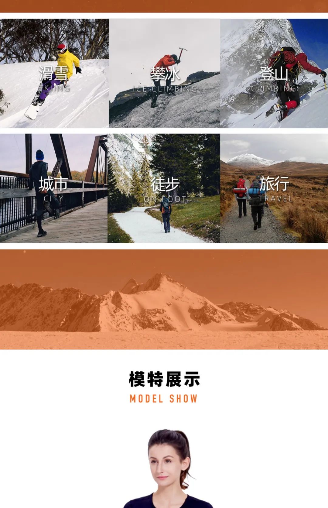磨毛排汗锁温系列!适用于徒步、登山、滑雪、攀冰等秋冬季高强度运动及全季节高海拔户外运动。
