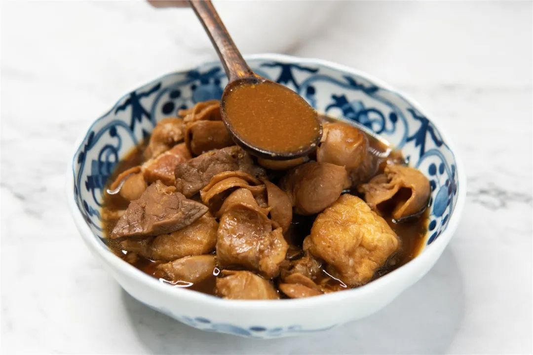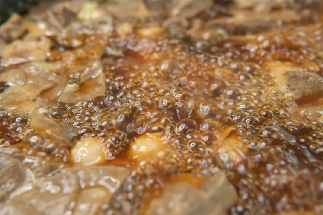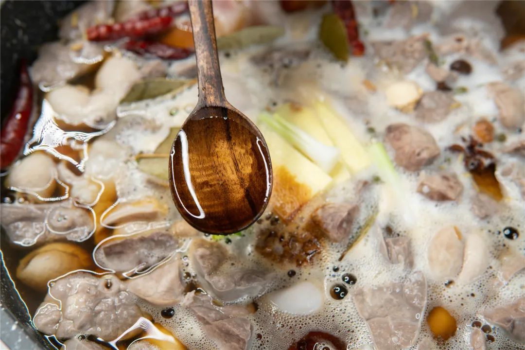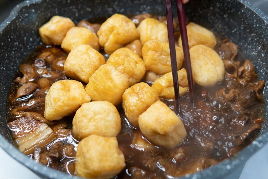 6、猪下水炖煮一小时后加入豆腐泡,再煮五分钟即可关火。
