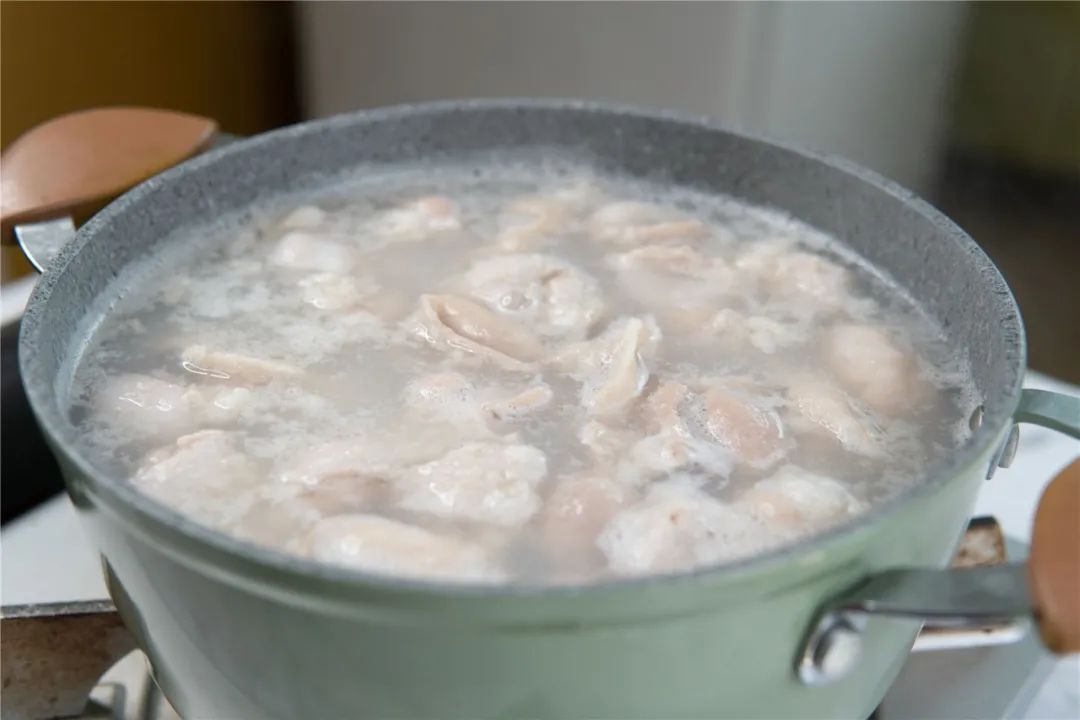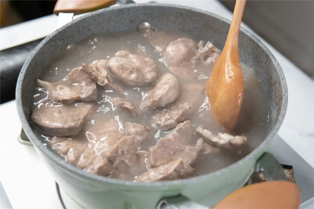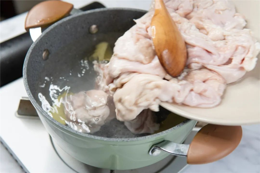 2、猪大肠也是同样的操作,焯水后捞出备用。