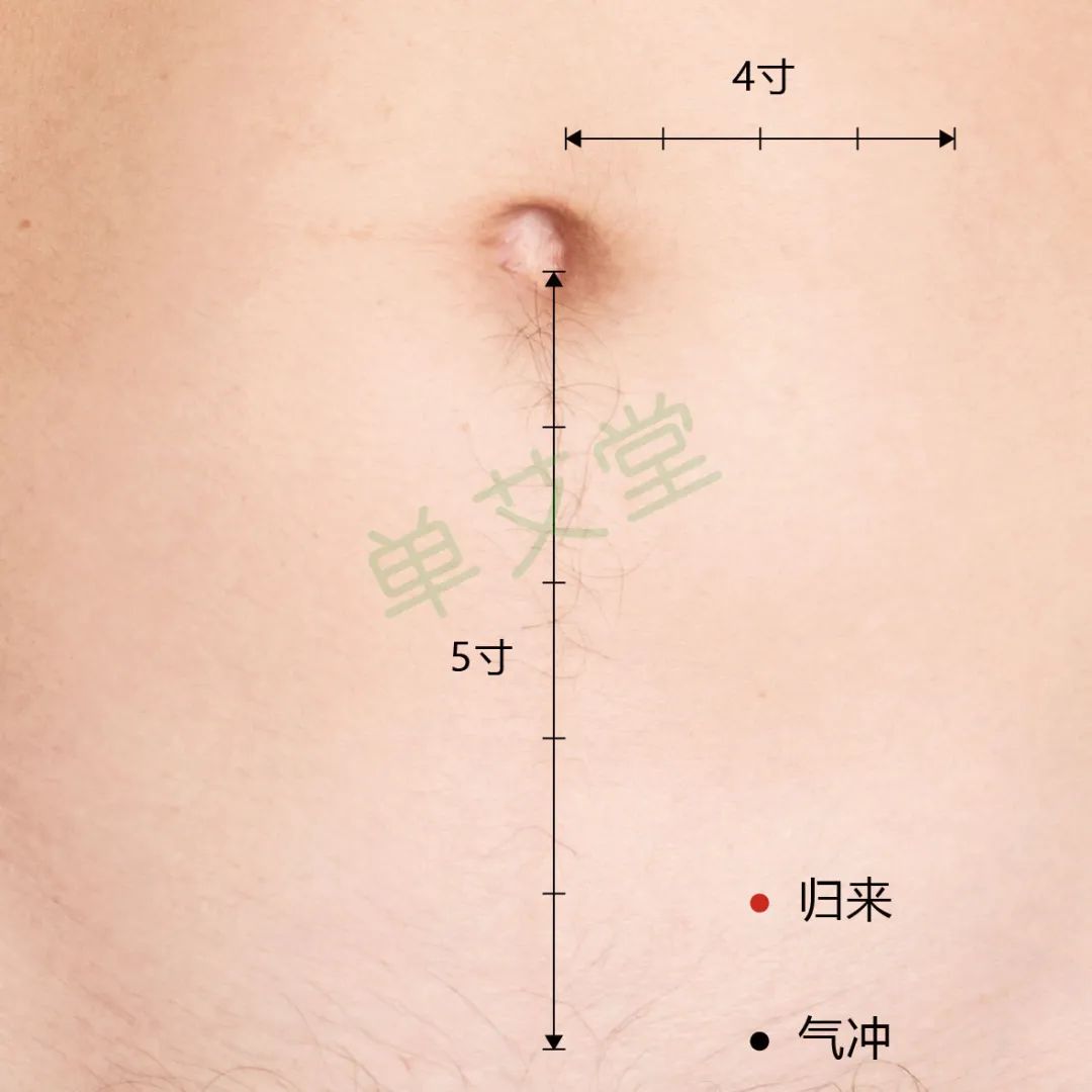 艾灸穴位:中脘,神阙,关元,八髎穴,子宫,归来,足三里,三阴交。
