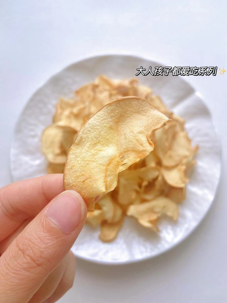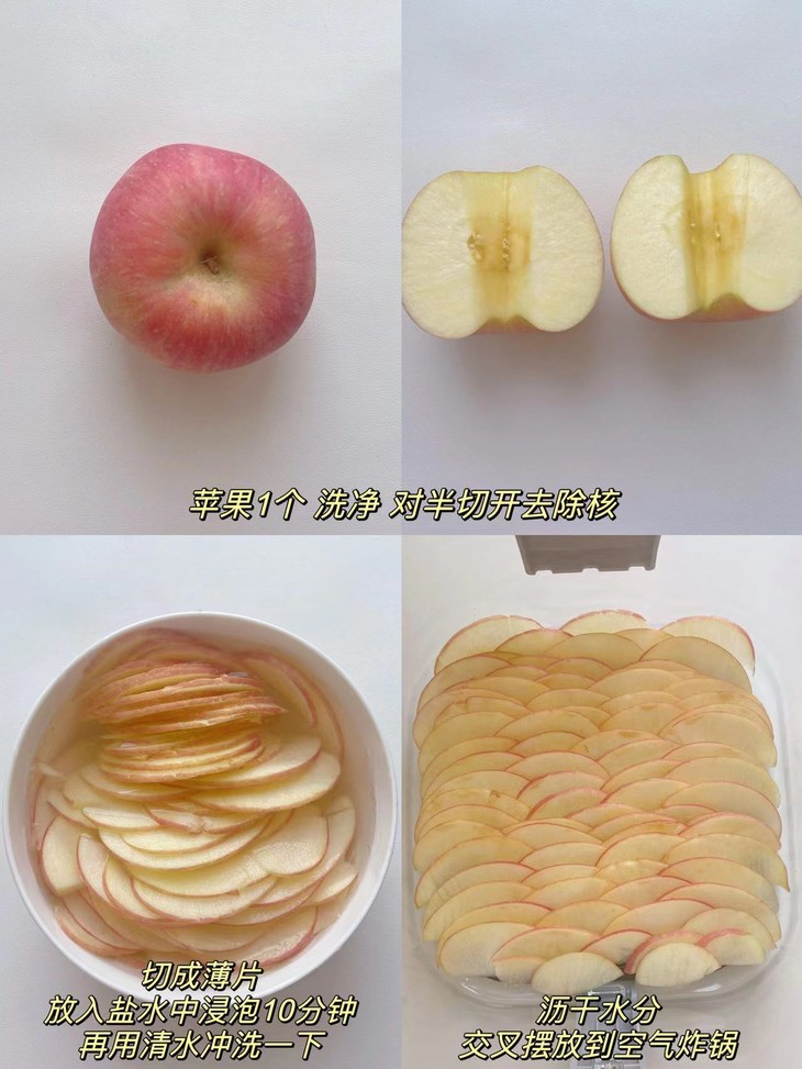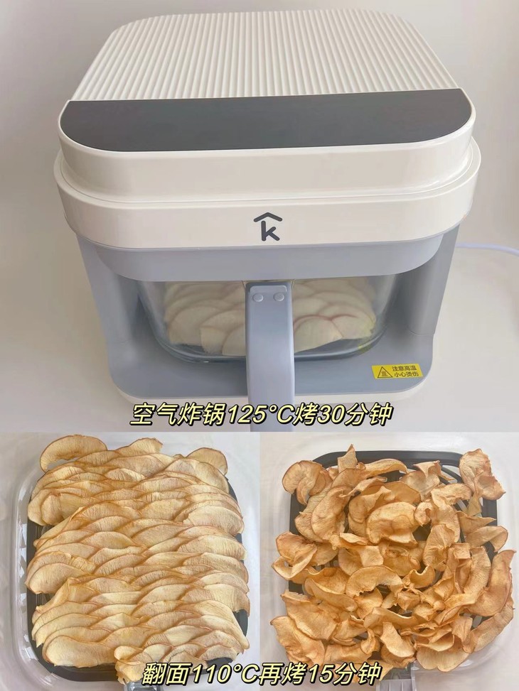 小提示:刚烤好的苹果脆片还是有点软的,晾凉后就会变脆了!