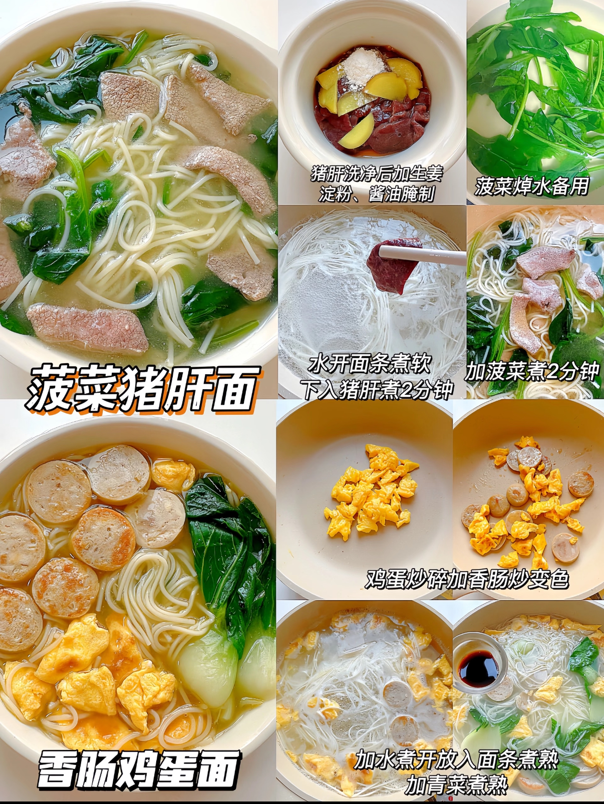 🥬菠菜猪肝面 🍜香肠鸡蛋面