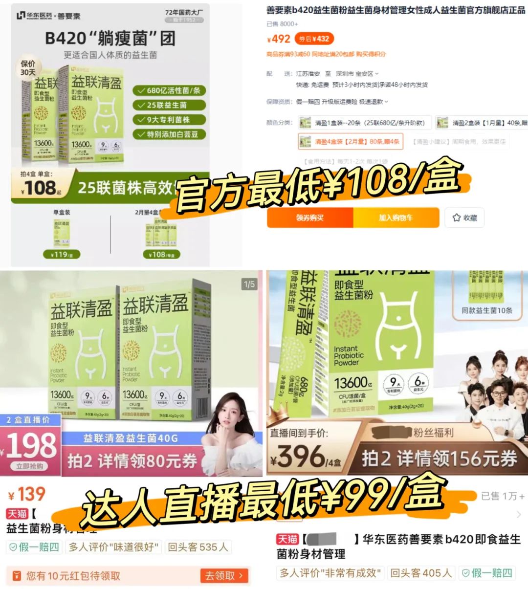 即使大促期蹲达人直播间,多盒囤货的蕞低均价,也要¥99/盒!