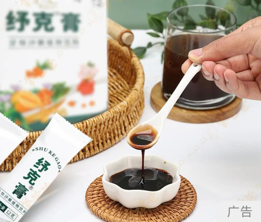 这款纾克™膏·甘桔沙棘植物饮料,遵循古法熬制,经过选材、炮制、清洗、分拣、煎汁、滤清、秘调等7道程序,采用土灶台,用柴火烧制,人工不停搅拌,小火收膏而成。