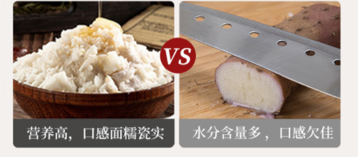 技巧四,看口感:温县铁棍山药蒸煮15分钟左右就粉糯,口感"面而甜"。而菜山药味淡水分多,远没有如此的回甘回甜。
