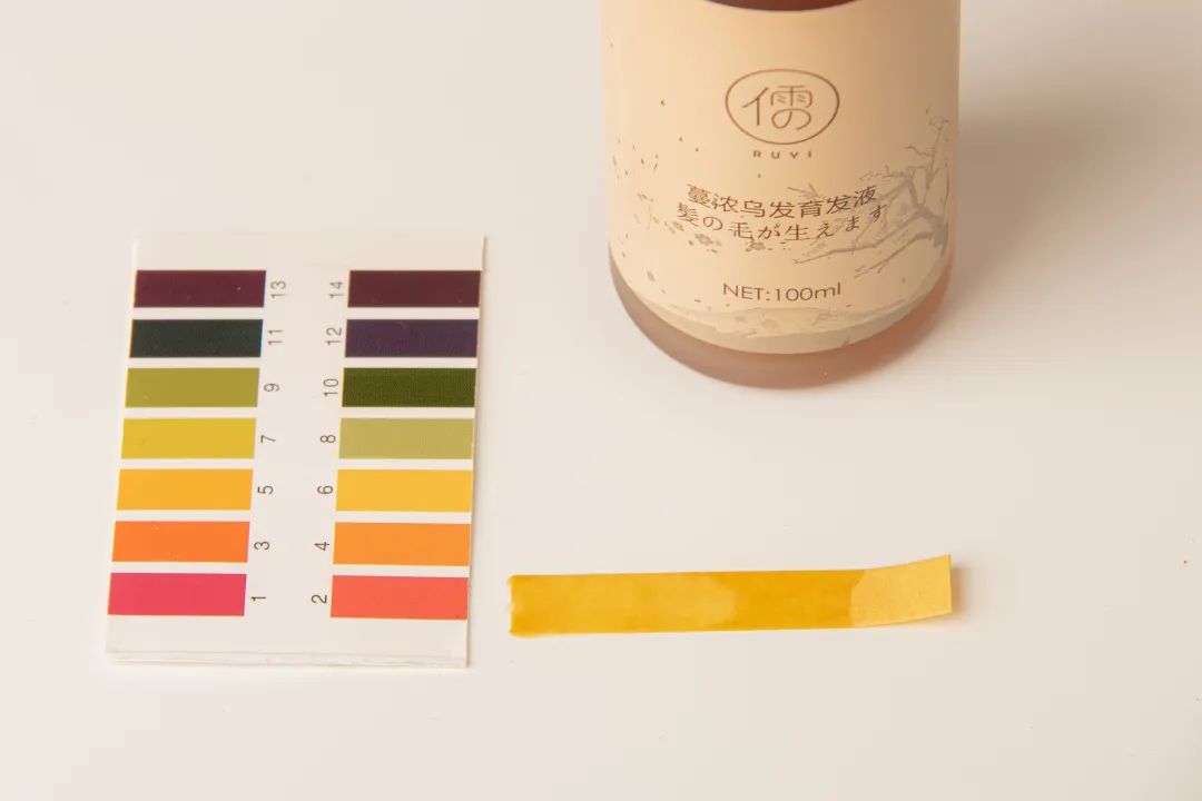 我们也做了pH测试,呈弱酸性,与头皮酸碱性相近,不会刺激头皮。