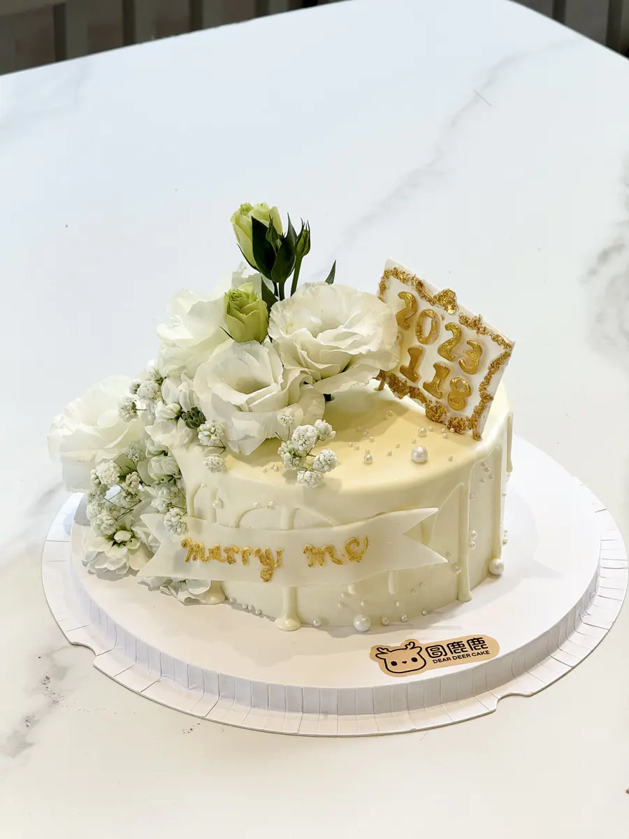 产品:求婚蛋糕 白色系鲜花翻糖定制款
