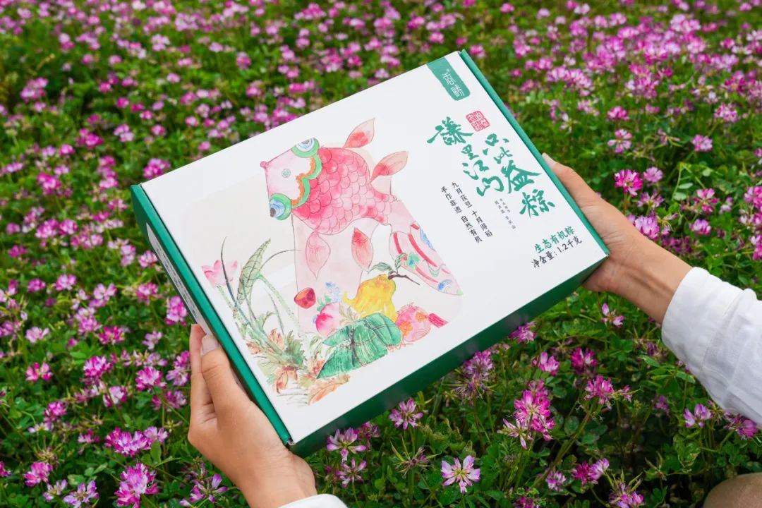 鲤跃荷花龙门吉:祈福消灾、求吉呈祥,适逢高考将至,喜跃龙门,“荷”家欢乐,希望这盒粽子陪伴高考考生,“鲤跃龙门,一举高粽!”