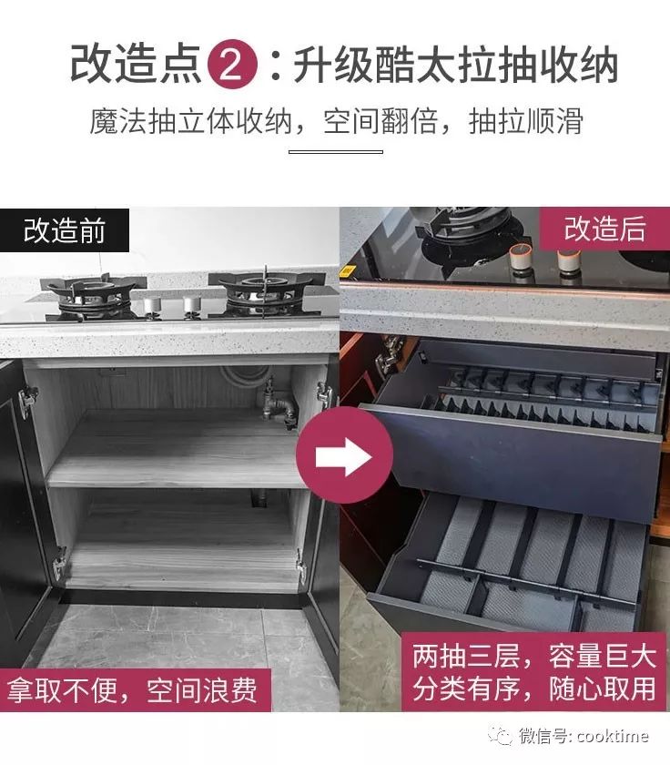 酷太坚持8年自主研发,已获得专利证书130项,拥有一套领先市场的厨房收纳系统,为千万中国家庭解决厨房脏乱差,缔造厨房新生活。