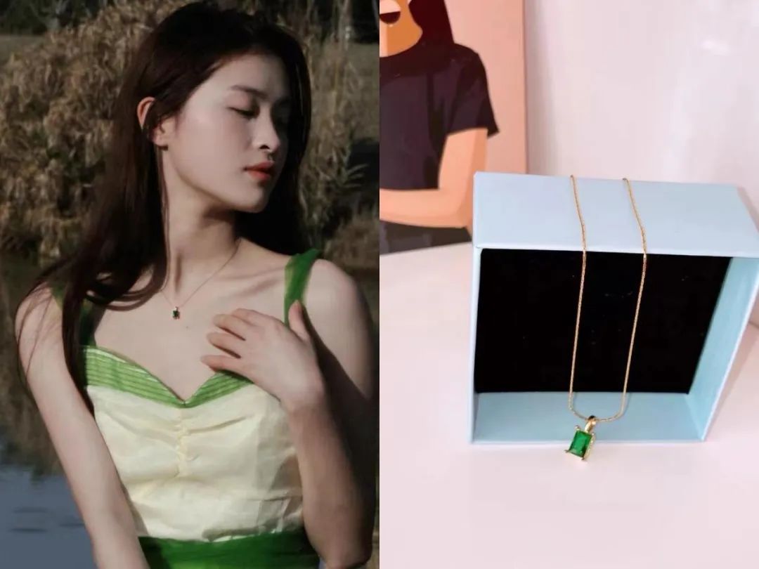 这条绿色项链也超美,平时穿衣服单调,戴上它就出彩了,也算是“花小钱提升穿衣品质”的思路。