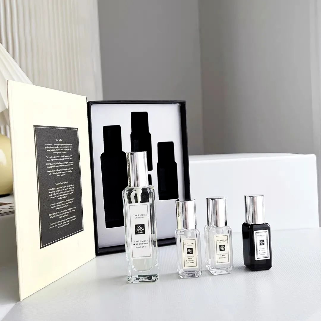 祖马珑Jo Malone限定香氛礼盒:白苔与雪莲30ml+英国梨和小苍兰9ml+黑莓与月桂月9ml+末药与东加豆9ml。
