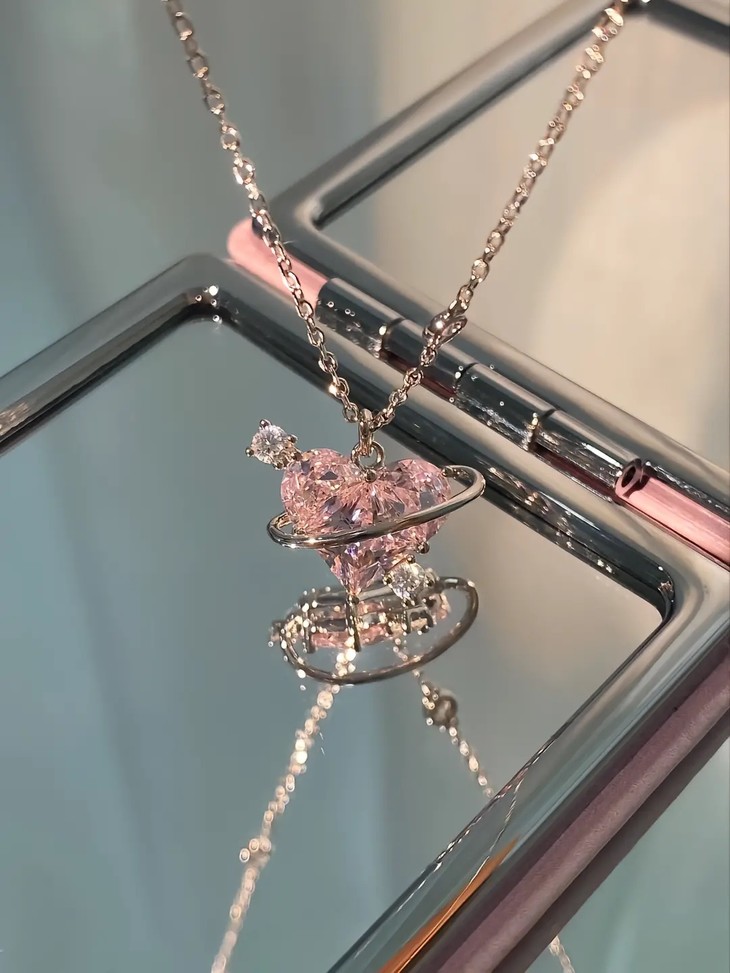 什么是宇宙级的浪漫?当然是拥有一颗粉粉的恋爱星球啦!清透粉爱心项链,美到我心尖上了~