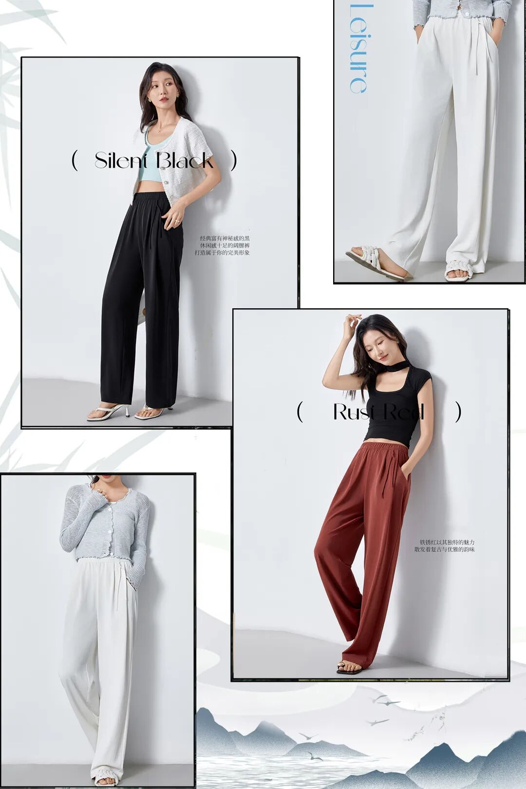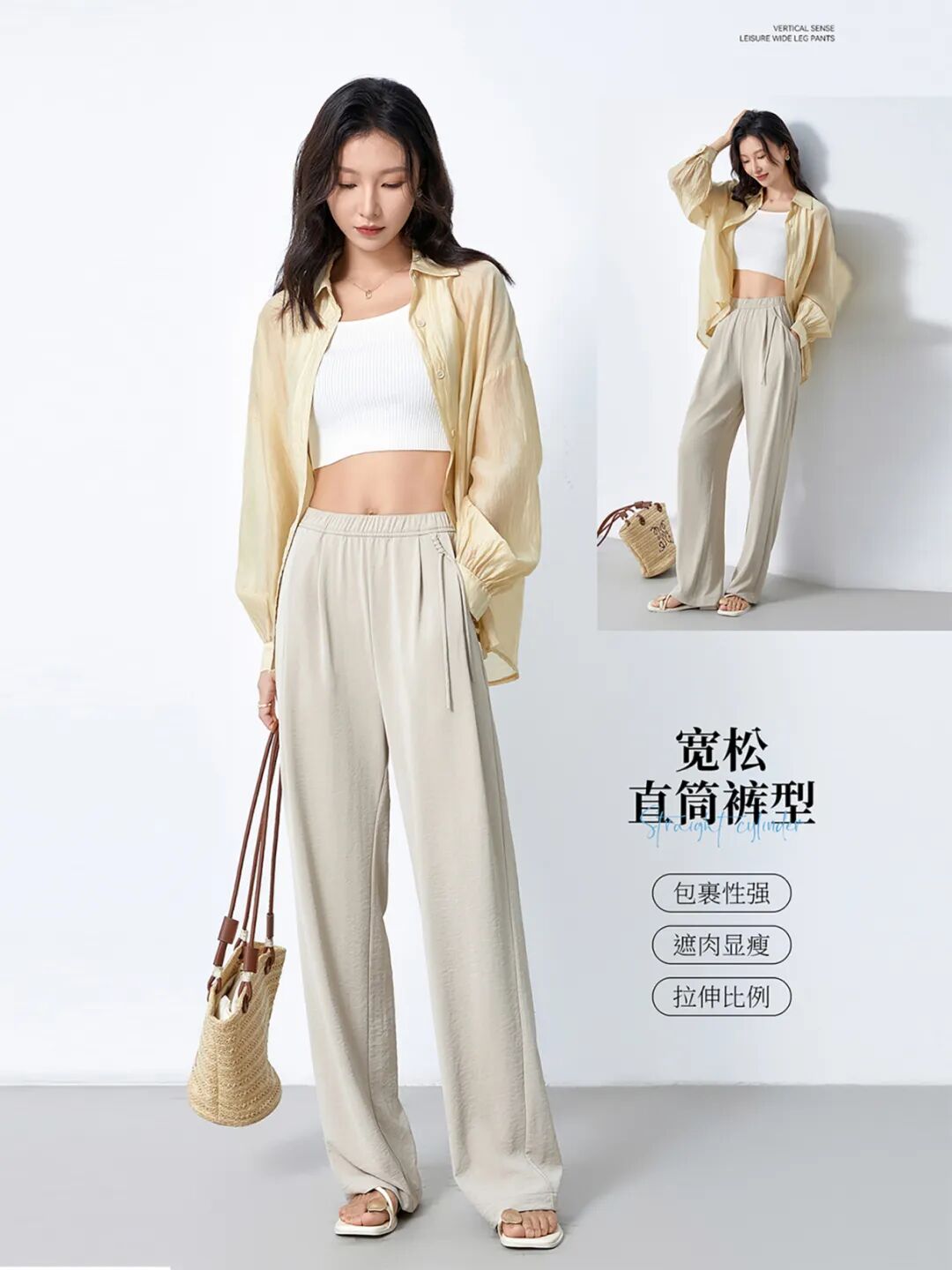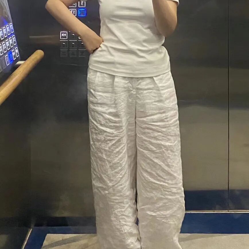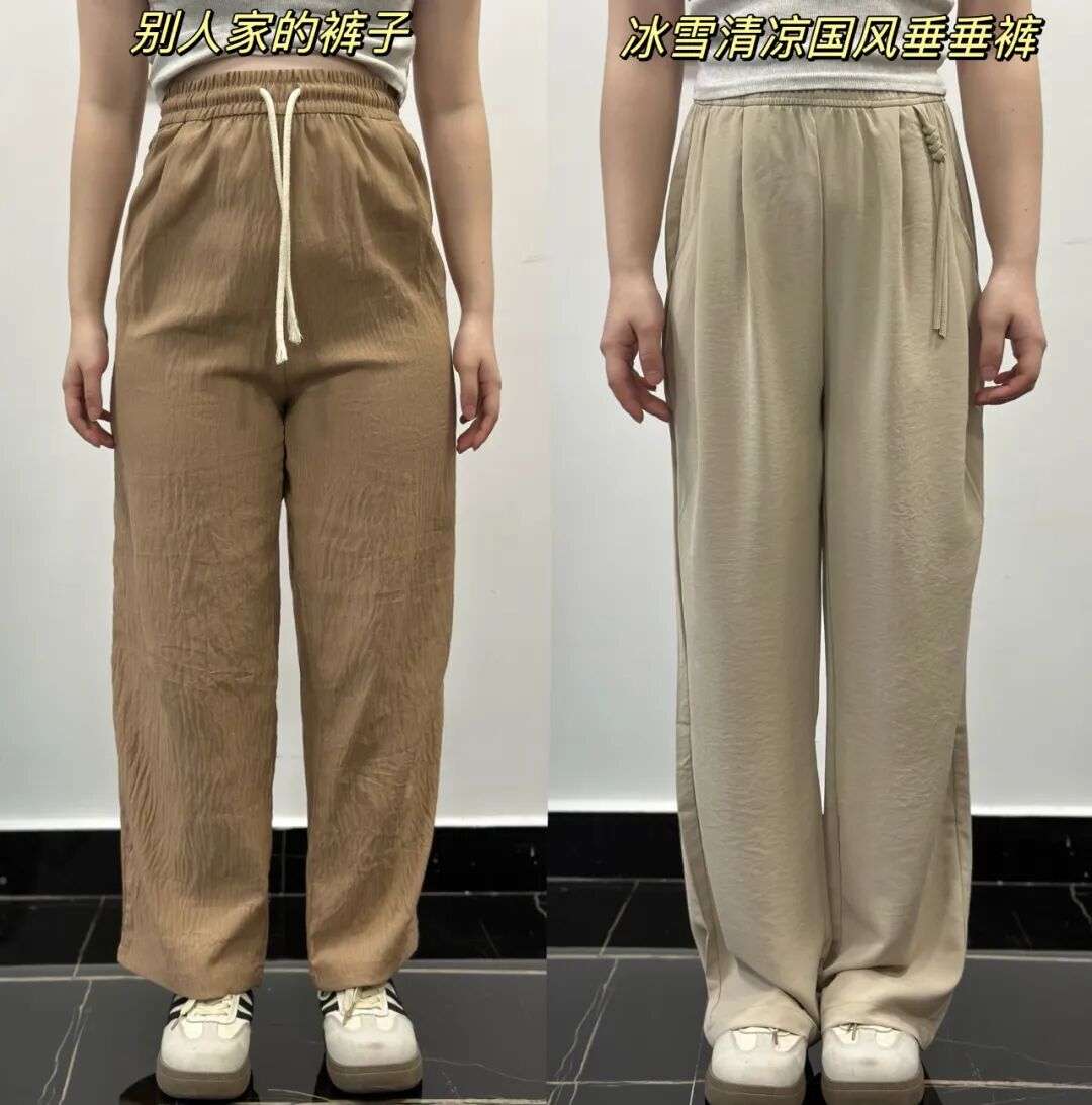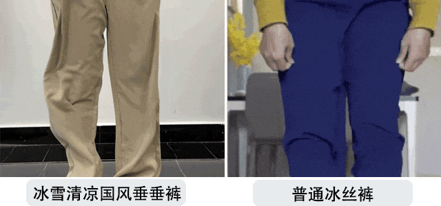 虽然直筒裤的知名度已经在“显瘦修腿界”到了响当当的程度。但还是抵挡不住某些商家只模仿爆款做样子货,实际“货不对版”的裤子不在少数!!冰雪清凉国风垂垂裤品牌方在“做裤子”这件事上深耕多年。在版型设计上已经到了炉火纯青的地步,成品参考了上千位亚洲女性的下半身维度尺寸。多次修改试穿,通过3D立体裁剪设计自主设计+自主出产。经过这样推敲打磨做出来的基本款是不可能不好穿的!!毕竟即使是肉眼看起来版型差不多的两条直筒裤,腰胯部or大腿处版型多一寸/少一寸,上身之后也是天差地别!!正面、侧面、背面的都留有一定的余量,有种“腿在裤中晃”的纤瘦感~管你是大腿肉肉太多还是小腿天生粗壮,亦或是O型、X型困扰balabala……都没有关系!直筒设计能帮你全部“隐藏”~~~再加上有高腰设计+留到脚面的裤长拉长身材比例,让人感觉腿是从肚脐眼那儿开始的。腰腹正面的位置做了几道纵向的立体压褶处理,在视觉上拢出腰线。👉Duang Duang Duang的弹性,只要在体重范围内,不会有人穿不上。但凡你是对自己身材不太自信的姐妹,不妨试试它的“p腿”魔力!撇掉那些身材焦虑~ 尤其是穿在身上的,很多长裤材质又厚又闷,38°C天气,闷出45°C的体温简直是煎熬...所以一到夏天,我们就对冰冰凉的东西格外喜欢~这款冰雪清凉国风垂垂裤主打“凉感”,这也是我力荐它的原因之一!我们对比过很多家的冰丝裤,确实只有它凉感降温明显,做到贴肤凉。其实为了规范市场上的不良炒作,相关部门早就制定了凉感纺织品的产品标准://GB/T 35263-2017《纺织品 接触瞬间凉感性能的检测及评定》中规定,合格品服装的接触凉感系数不小于0.15。冰雪国风垂垂裤在面料上多花了些成本,用的是特殊凉感面料,甚至有凉感质检证明认证:注:测试结果为特定实验室环境下的结论,针对送检样品有效。数据仅供参考,具体以实物为准。有一种手握都握不住的飘逸感,可想而知上身之后得有多凉快。你可以代入一下👉用双手轻轻捧起一掬山泉水,水从指缝里溜走的那种绕指柔的凉滑感~因为有面料自带凉感的性能,比起那些牛仔、棉质的裤子…都要凉快:真的不要小瞧这几度,在热到炸的夏天里,它能让你无惧夏日炎炎,丝丝燥热都被它一一消散,始终保持清爽舒服!走动起来时不时还有风钻进裤腿里,自带一份通透体感~它也不会像其他一些面料一样出汗了就软趴趴贴腿黏肉~面料虽然很轻盈,但垂坠感一点不输,不会软趴趴贴在身上,不会有一回家就想换衣服的闷热 感!而且吧,它还可以是硬核物理防 晒里的一员!!挡得住紫外线的毒打!特别适合夏天不想露腿怕晒黑又渴望能清凉一点儿的姐妹们穿!夏天穿衣凉快,但有些商家为了追求凉快把裤子做得很薄,越薄质感越差,也会越透。因为冰雪清凉国风垂垂裤的面料纤维密度高,即使是浅色系穿上也不会透肉,飘逸的材质也不会夹臀,随时随地为你保持优雅得体~走线做工也到位,拿放大镜都挑不出一丝错来,没有因为价 格白菜而降低 制作工艺。而且很抗造,用刀和刷子在裤腿上使劲来回剐蹭,也不会勾丝、不会起球,特别耐造。