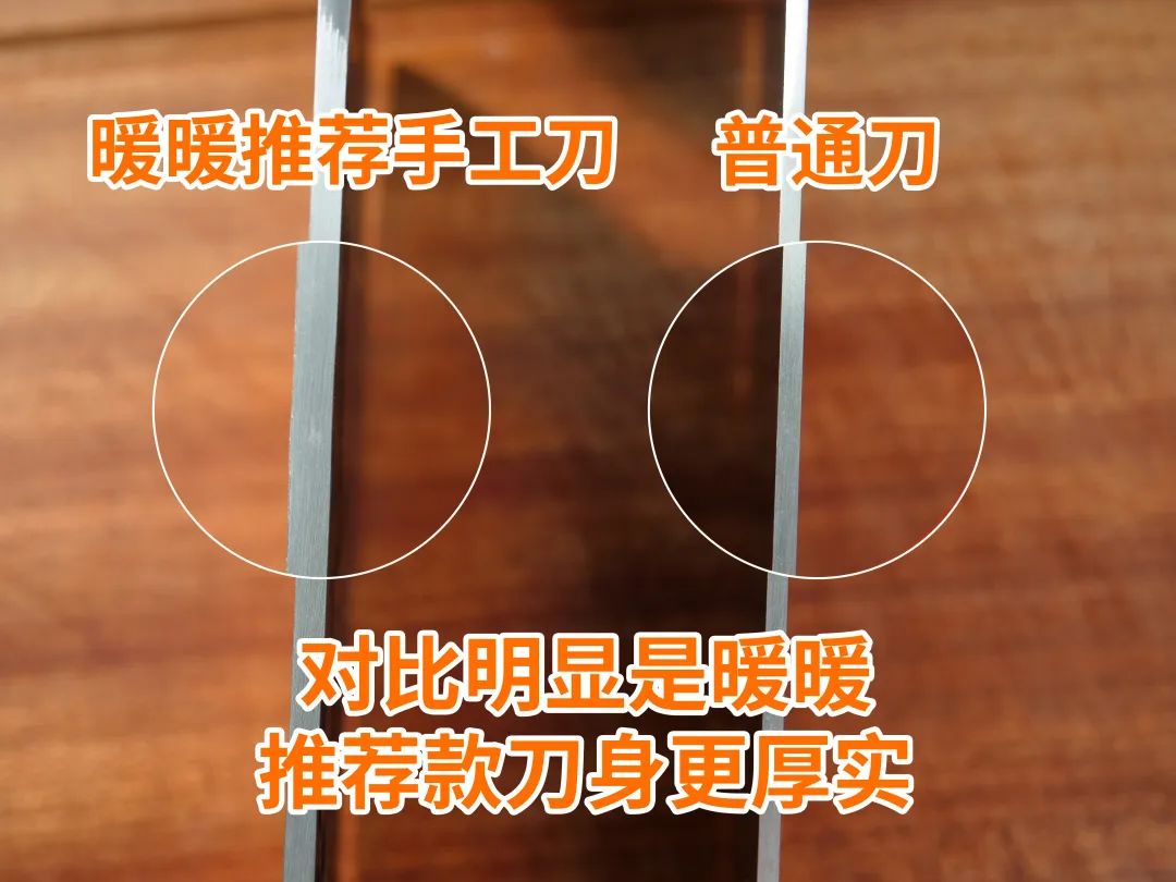 和普通刀对比,这款刀的刀身更厚,但是只有约340g的重量,拿在手里稳重却不累!