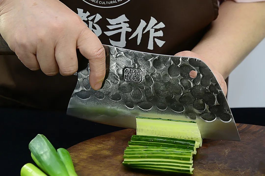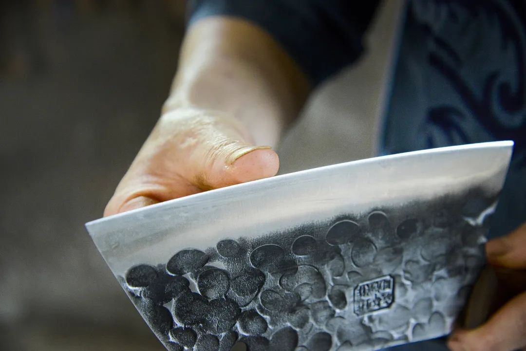 这把砍切剔三合一菜刀采用非遗技艺纯手工打造,工序繁复,历经数十道工序,费时耗力,但这却是任何机器刀具都无法比拟的。