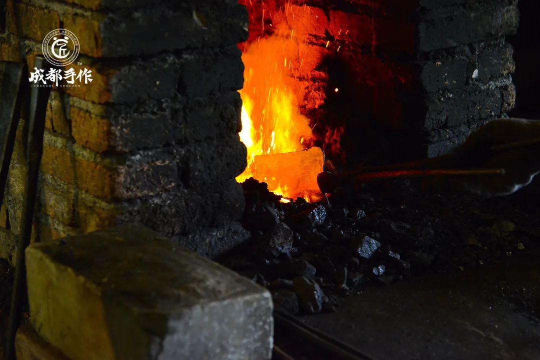 高温反复炉烧便于锻打,这一步对火候控制极为严苛,火太大太小都会影响钢板品质。