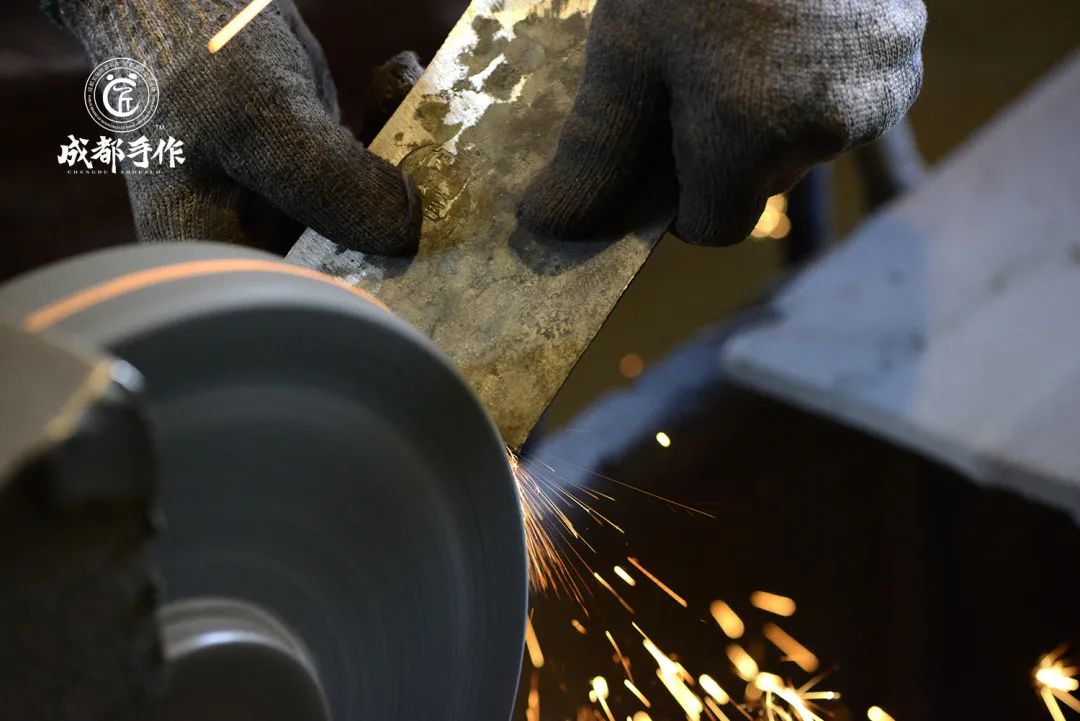 手工制刀最后一步就是精心打磨,经过慢工细活出来的手工刀锋利耐用,使用数十年依旧好用如新。