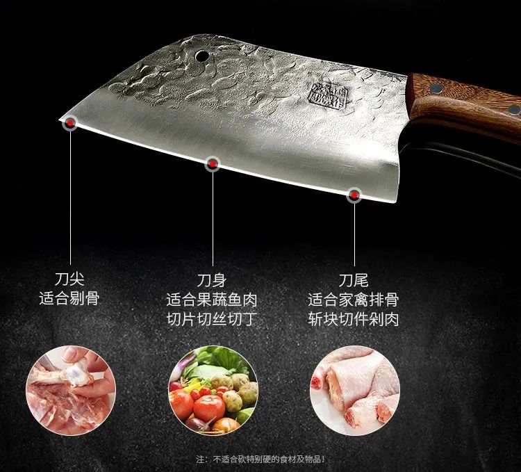 但是注意:此款菜刀不适合砍棒子骨等较硬的骨头!!!