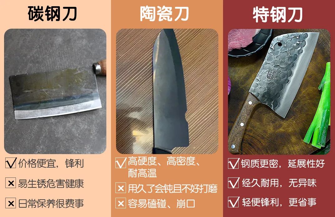 而现在市面上刀的材质主要有碳钢刀,这类刀虽然锋利但易锈,日常保养很费事