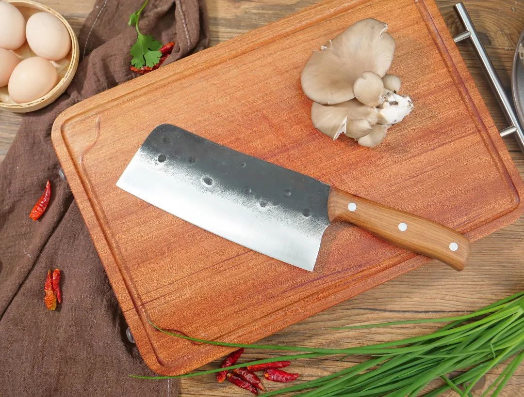 炼制成的菜刀不含过量的金属离子,不易沾染异味,不易与食物发生反应,安心健康~