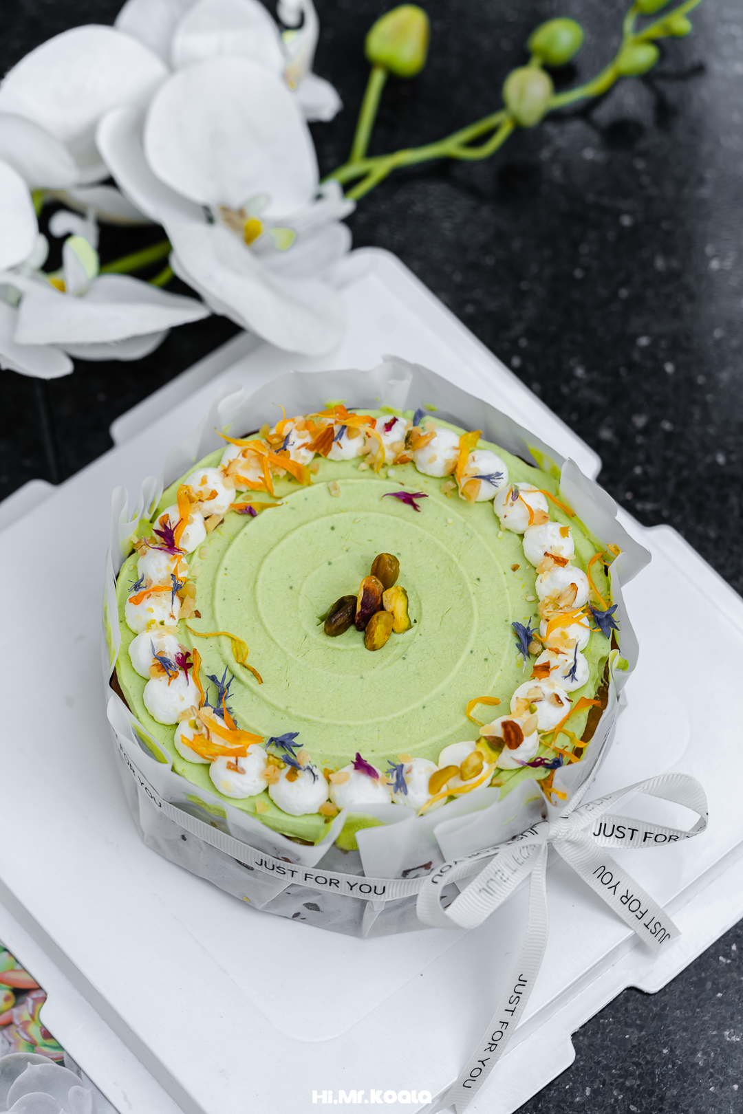 个性十足的一款开心果蛋糕,开心果与伯爵茶的风味组合,每一口都值得回味。选用了日本昂贵的开心果酱,特调而成的开心果奶油,自带天然的深绿色,坚果香气浓郁,是明显的果实气息,斯里兰卡的进口伯爵茶经过一夜慢渍,制成低甜茶冻,佛手柑香与坚果香互相衬托。