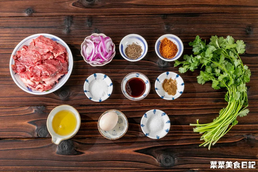 腌肉:牛臀肉/牛肋条/上脑/肉眼350g 洋葱1个 香菜100g