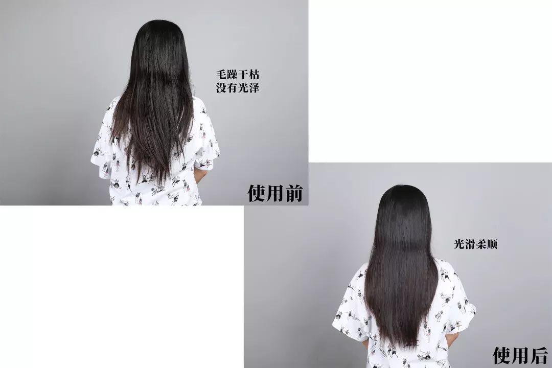 可以看到我使用了护发精油的头发,明显有了光泽,头发的毛躁也被抚平了,比之前更柔顺黑亮惹!包括乱翘的发尾,也服服帖帖的了。